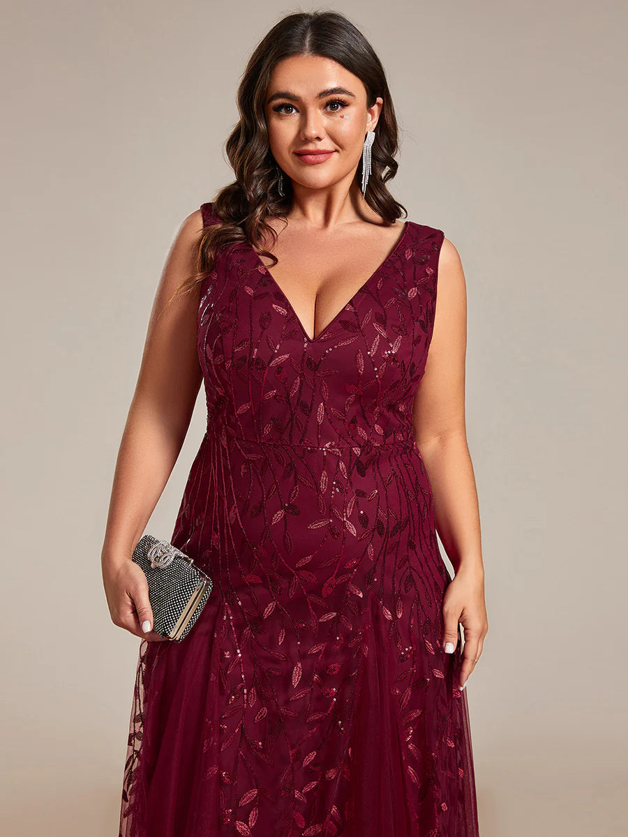 Unleash your inner diva with our Shiny V-Neck Sequin Sleeveless Evening Dress with Tulle! This breathtaking design features a sparkling v-neckline adorned with sequins, creating a captivating focal point. The sleeveless cut showcases your shoulders and upper arms gracefully, while the tulle overlay adds a touch of ethereal elegance. Perfect for evenings out, special occasions, or as a show-stopping wedding guest dress, this style is sure to turn heads.